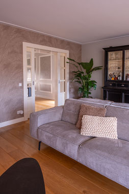 Een prachtige vrijstaande gezinswoning in Schalkhaar met een klassieke én moderne uitstraling. De royale woonkamer kan door middel van klassieke ensuite deuren worden gescheiden van de eetkamer. Door het gebruik van donkere kleuren en rijke materialen is er bewust gekozen voor het toevoegen van warmte, diepte en karakter aan het interieur.